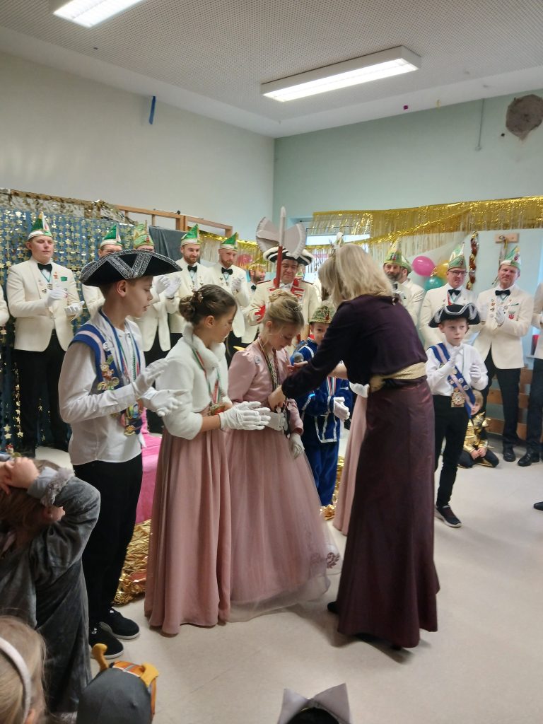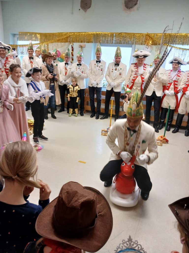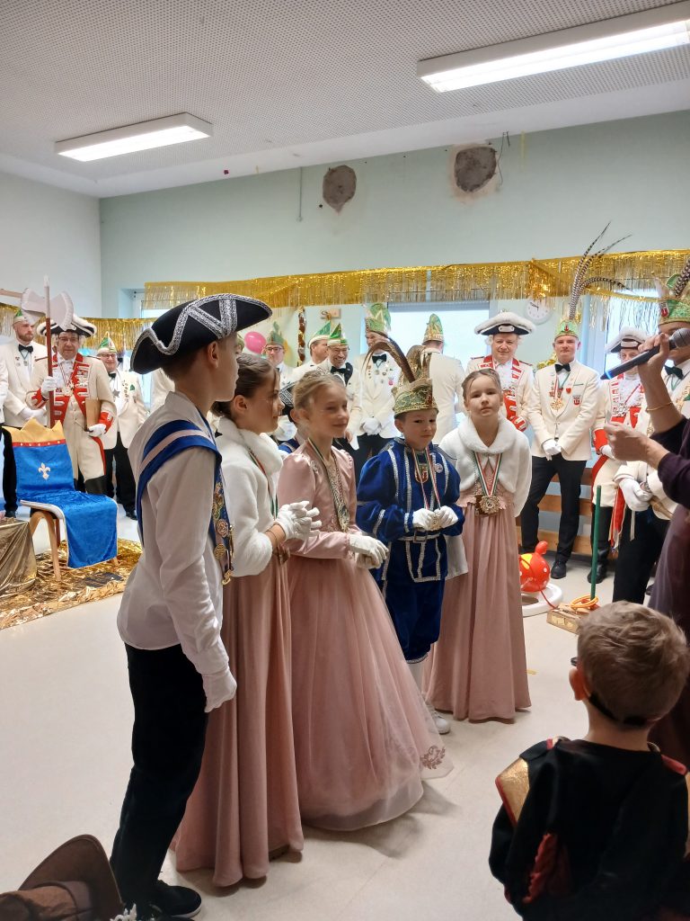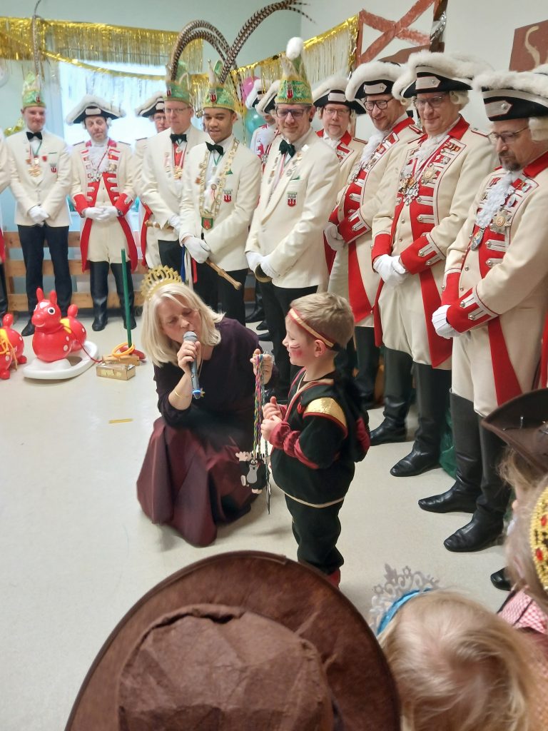 Unsere Kerstin hat an Weiberfastnacht das Kinderprinzenpaar, den großen Prinzen samt Garde und dem Elferrat in Empfang genommen. Der Große Prinz musste verschiedene Aufgaben meistern, um sich für seine Rolle als Anführer der Feierlichkeiten als würdig zu erweisen. Auch das Kinderprinzenpaar durfte sich spannenden Herausforderungen stellen, um den berühmten Buddel-Orden zu erhalten. Mit viel Geschick und Mut haben alle ihre Aufgaben gemeistert und wurden mit großem Applaus und Anerkennung belohnt.
