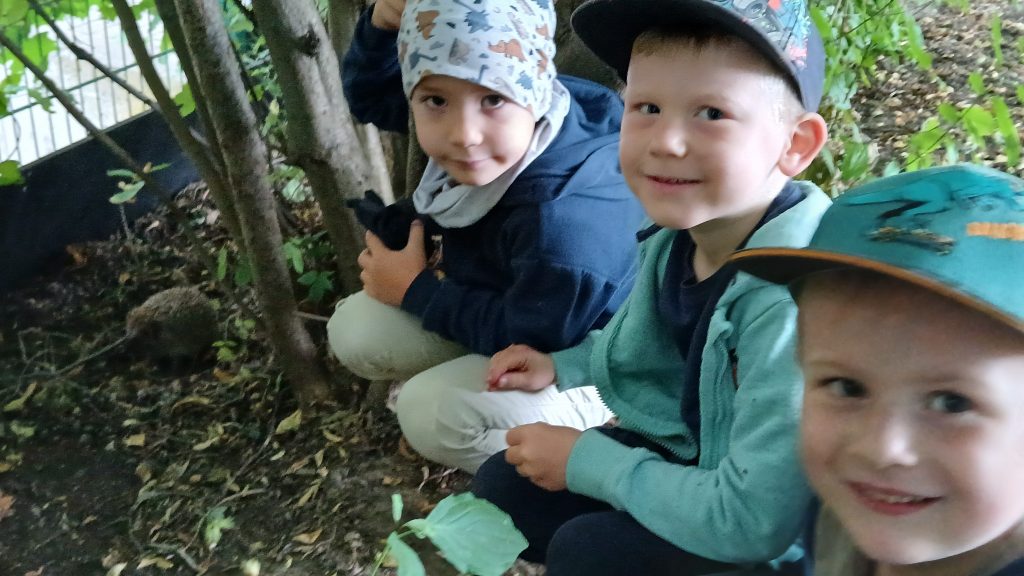 Ein besonderes Erlebnis hatten wir, als die Kinder auf dem Außengelände einen kleinen Igel entdeckt haben. Vorsichtig und mit viel Respekt beobachteten wir ihn aus der Ferne und sprachen darüber, wie sich Igel im Herbst auf den Winter vorbereiten. Dieses Naturerlebnis hat die Kinder spürbar begeistert und ihr Interesse an den Tieren der Jahreszeit geweckt.