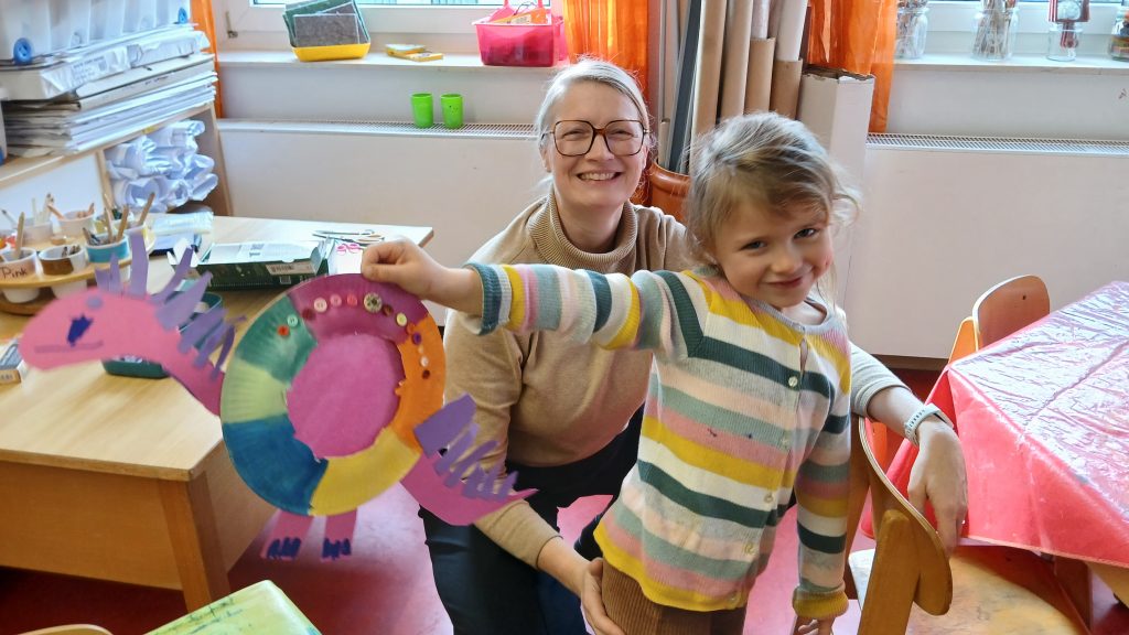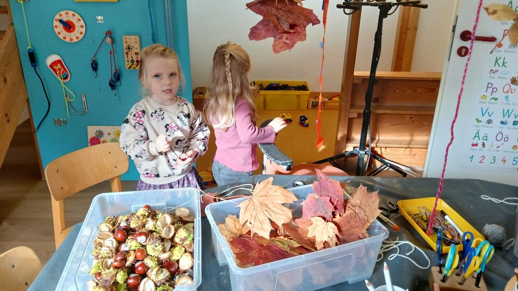 Drinnen wird fleißig gebastelt. Mit Naturmaterialien, Farben, buntem Papier und viel Fantasie gestalten wir unsere eigene Herbstdeko, die die Gruppenräume in warmen Farben erstrahlen lässt. Und natürlich darf auch das Laternenbasteln nicht fehlen. Mit leuchtenden Laternen, die jedes Kind individuell gestaltet, bereiten wir uns auf den stimmungsvollen Laternenumzug vor, der den Abschluss unserer herbstlichen Aktivitäten bildet und die dunkler werdenden Tage mit warmem Licht erfüllt.