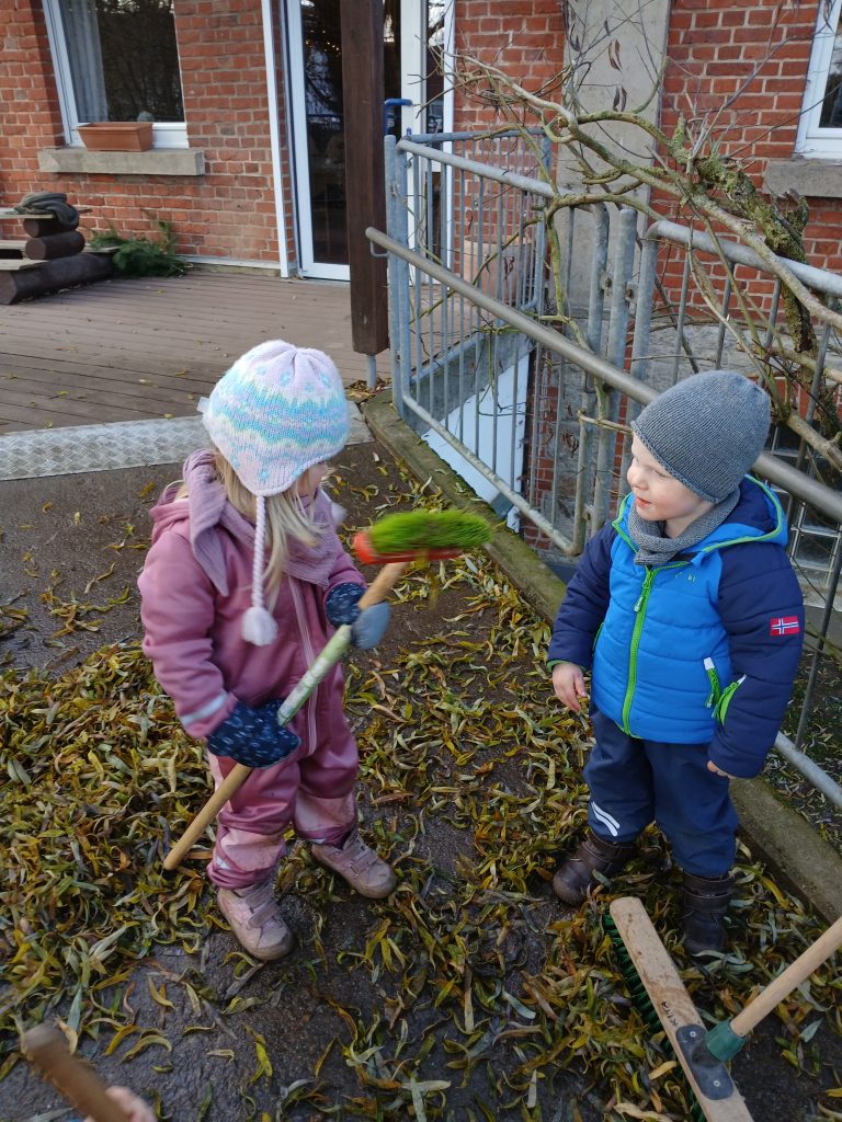 In unserer Kita genießen wir die bunte Herbstzeit mit allen Sinnen. Draußen wird nach Herzenslust im Matsch gespielt – denn wenn Regenpfützen glitzern und der Boden weich wird, gibt es für die Kinder nichts Spannenderes, als mit Händen und Füßen die Natur zu entdecken. Gemeinsam fegen wir das herabfallende Laub zusammen, beobachten die Farbenpracht der Blätter und erleben, wie der Herbst unsere Umgebung verwandelt.