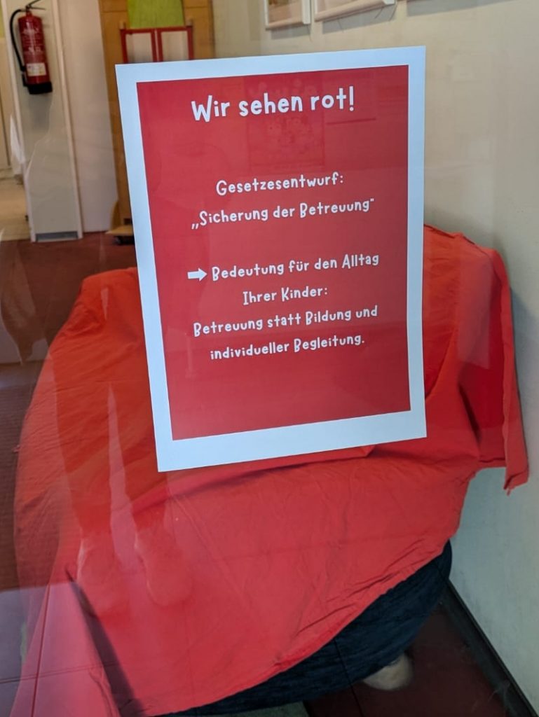 Am 15.04. hat sich unsere Kita an der Aktion „Wir sehen rot“ beteiligt. Gemeinsam mit vielen anderen Einrichtungen in NRW wollten wir zeigen, dass die aktuellen Bedingungen in Kitas immer schwieriger werden – und dass Kinder gute Rahmenbedingungen brauchen, um sich sicher und neugierig entwickeln zu können.