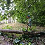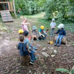 Die Kinder finden Baumscheiben, Stämme, Äste, Gestrüpp, Steinscherben und vieles, vieles mehr, sie beobachten Käfer, Asseln, Ameisen und sonstiges Getier, das hier lebt, buddeln Regenwürmer aus, geben sie von Hand zu Hand und bewundern sie.