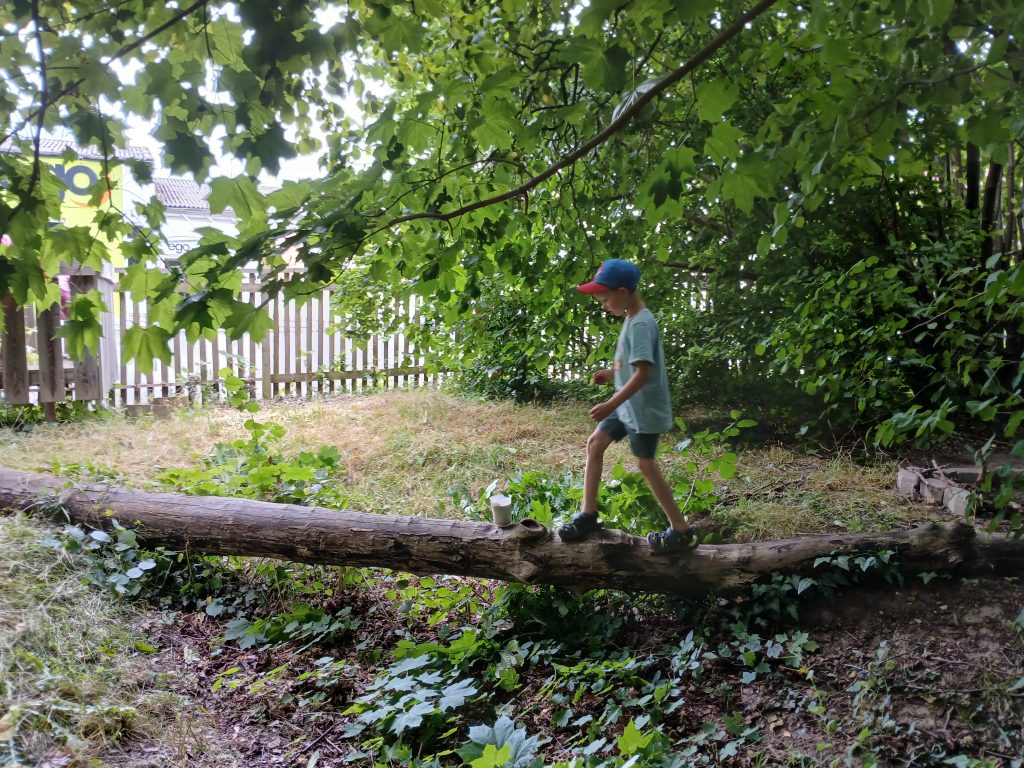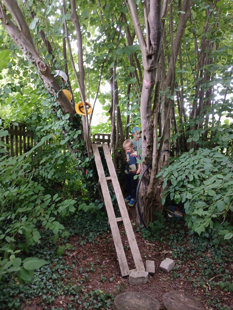 Die Bäume und Haselnussträucher, erst einmal erklettert, verwandeln sich binnen kürzester Zeit in Flugzeuge, Raketen oder fahrende Häuser – ganz wie es gerade gebraucht wird.