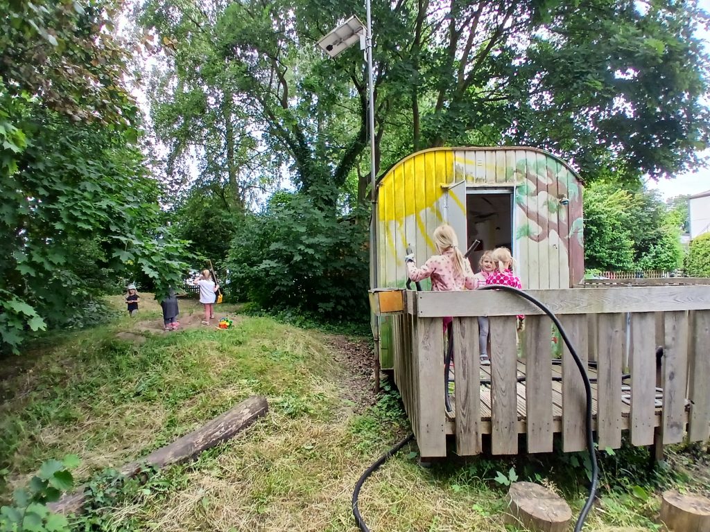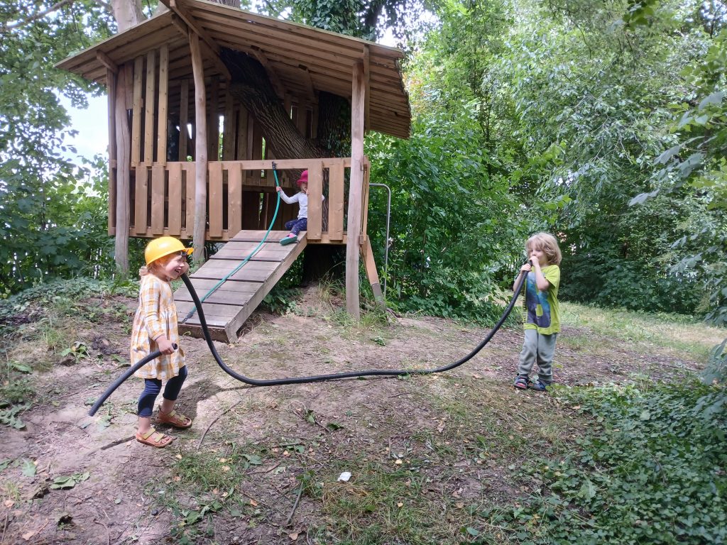 Spielen findet immer im Rhythmus des Einzelnen statt, braucht einen Begleiter, der Freude heißt, basiert auf kindlicher Neugierde und findet überall statt, wo Leben pulsiert: in spannenden Projekten, auf Bäumen und am Boden, im Wald und auf Wiesen, in unserem Abenteuerland, beim Hämmern und Sägen, bei unseren lebendigen Festen und bei geheimnisvollen Entdeckungen.